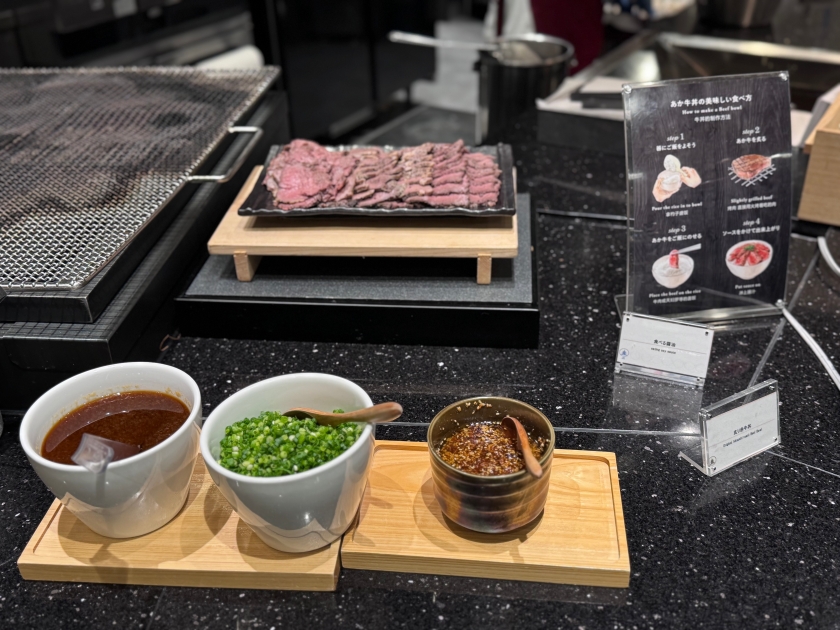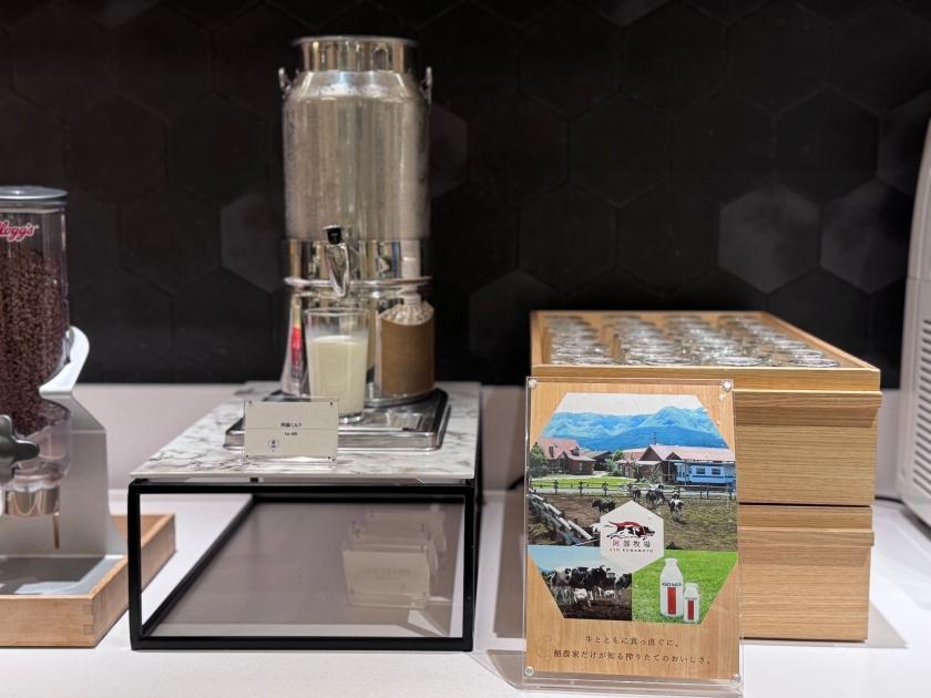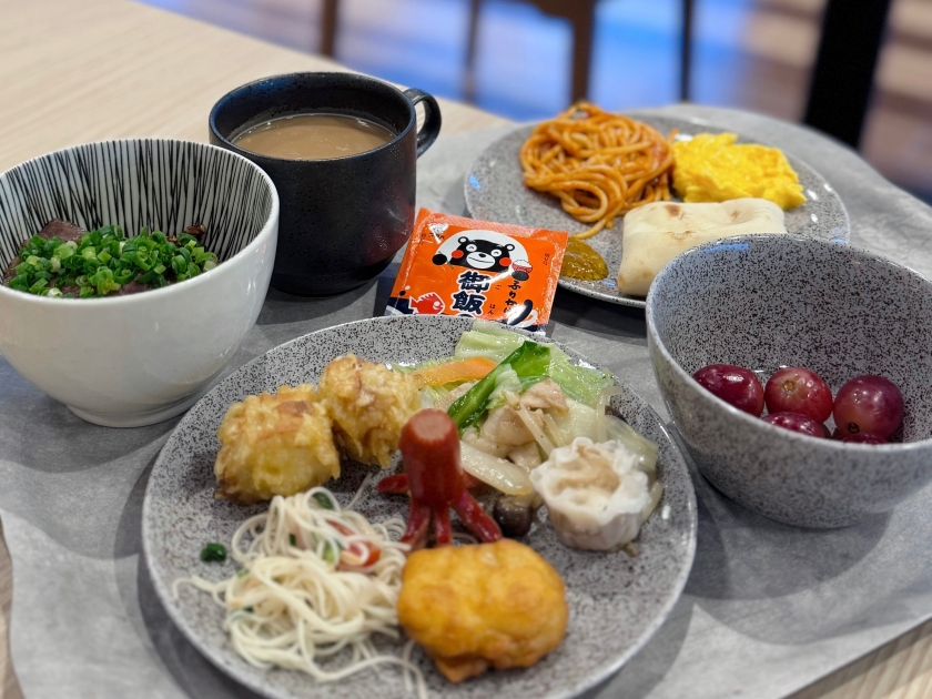 早餐同樣豪華,有現作赤牛蓋飯、玉子燒、熊本熊香鬆,還有阿蘇牛奶、各式麵包、熟食。