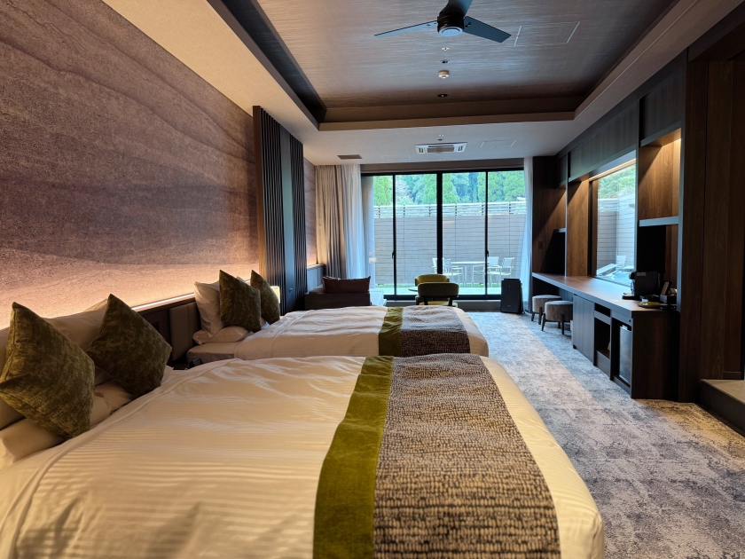 喜歡帶有大人感的,推薦選這間「高級房」,10月翻新後,走的是大地色木質調➕阿蘇森林的鮮綠點綴,氛圍超療癒,住起來很Chill,能好好放鬆慢活。這個房型最多可以入住4個人。
