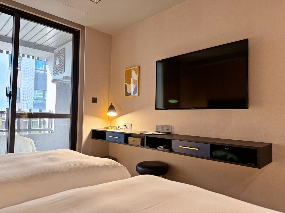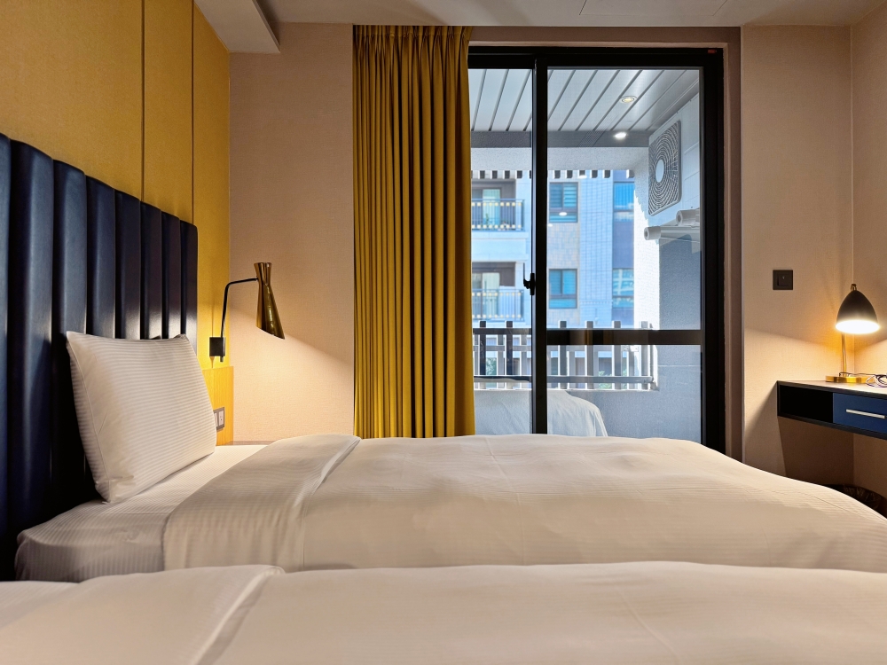 雙床的尺寸寬敞,床墊軟硬適中,如果有兩顆枕頭會更加分!床邊閱讀燈、插座配置都很貼心,不管是滑手機、追劇、還是處理工作,都不會卡卡。